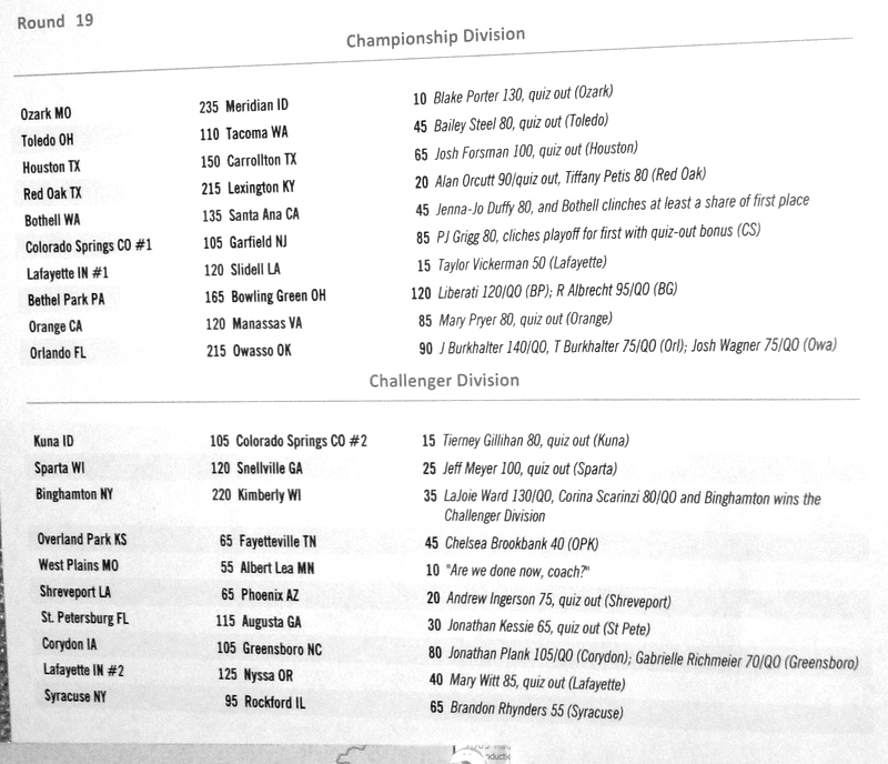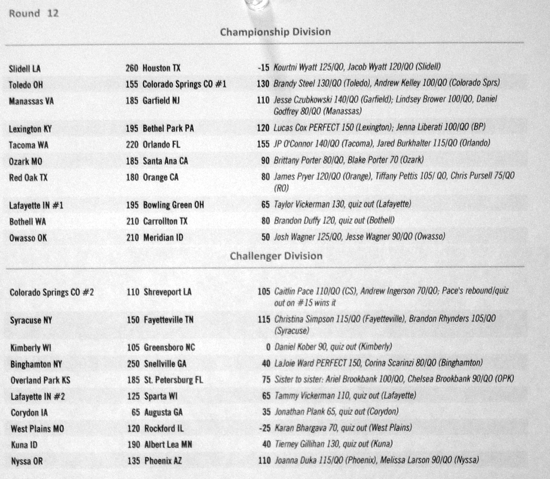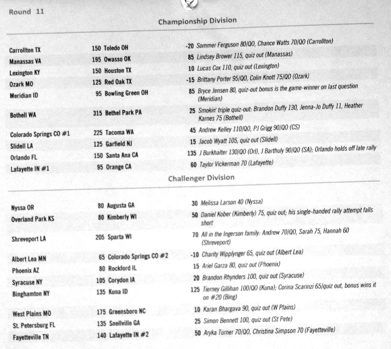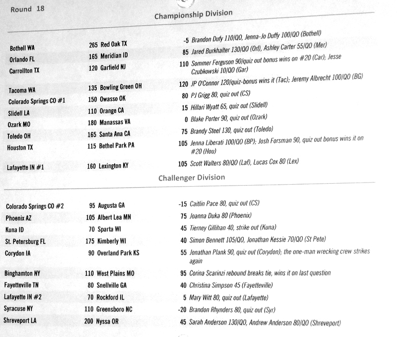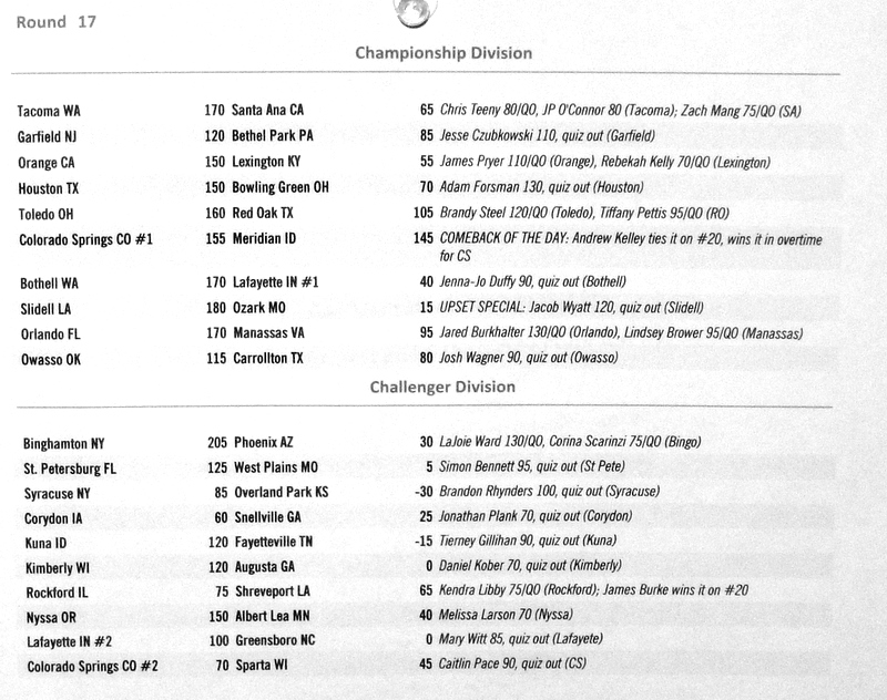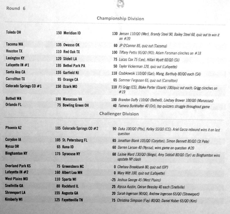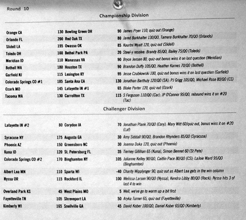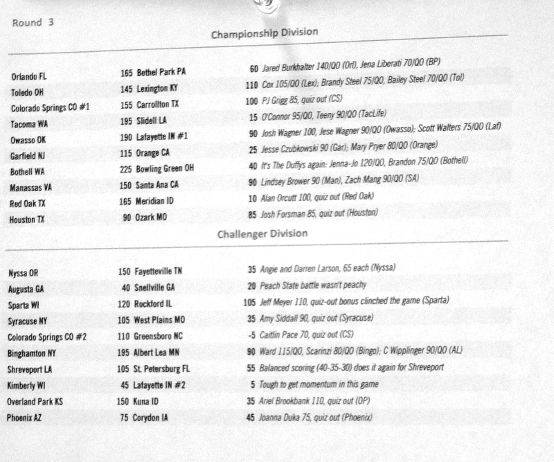 Below are the results from normal quizzing rounds on Tuesday-Thursday.