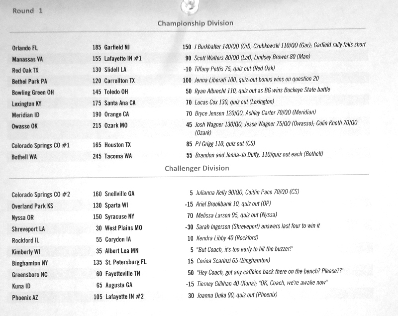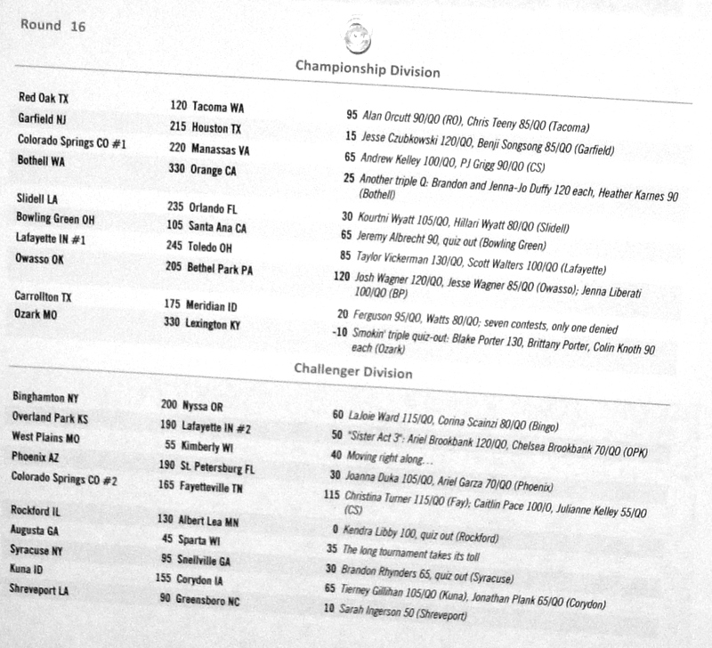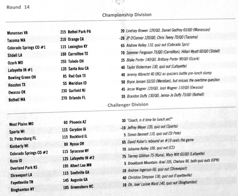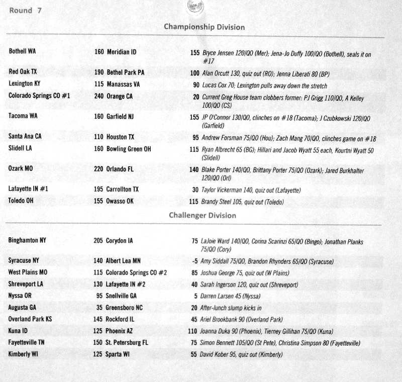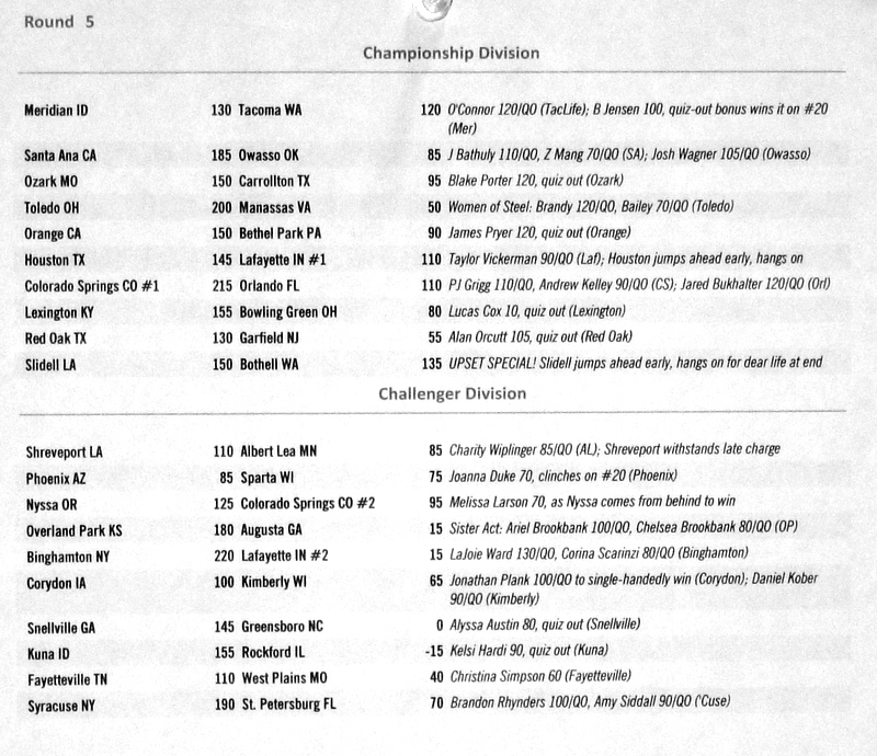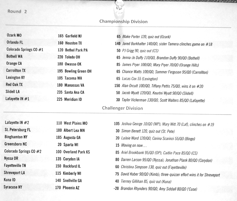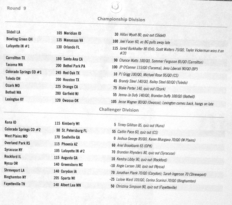 Below are the results from normal quizzing rounds on Tuesday-Thursday.