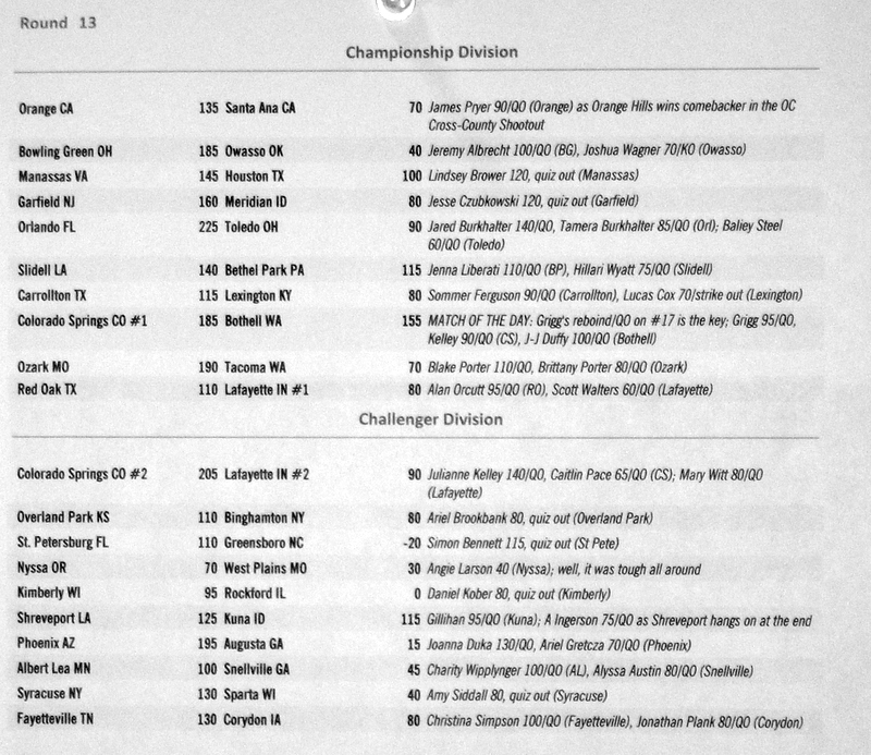 Round-by-Round Results for Tuesday-Thursday